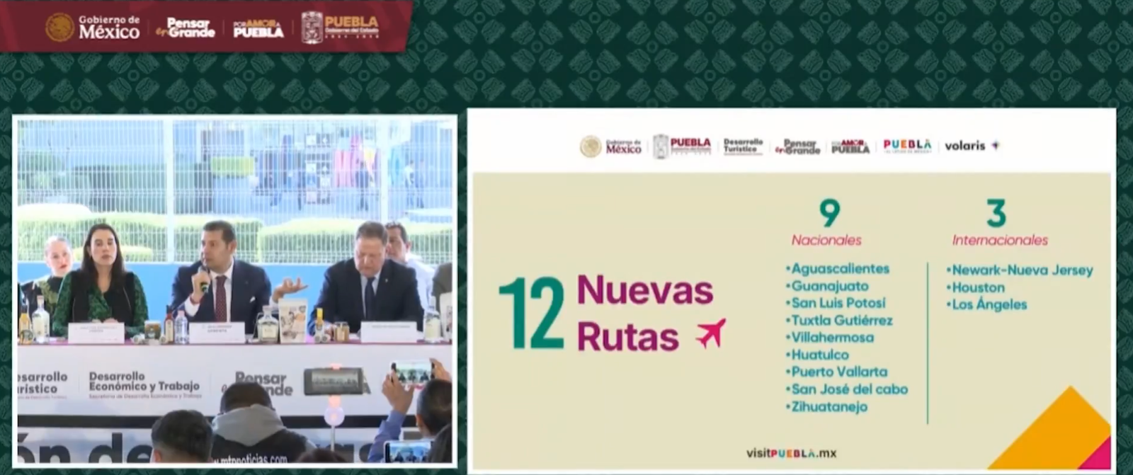 Durante el anuncio, el titular de la Secretaría de Desarrollo Económico y Trabajo, Víctor Gabriel Chedraui, informó que desde la terminal aérea salieron 38 toneladas de mercancía de 14 marcas con el distintivo “Puebla Cinco de Mayo”.