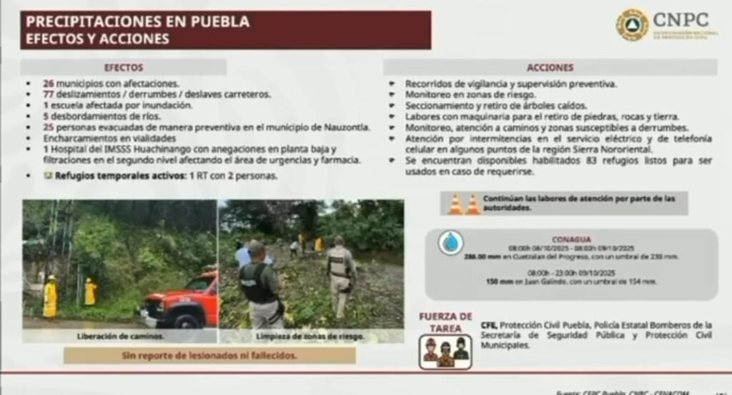 Anahí Valdez En Puebla, 26 municipios cuentan con afectaciones por la tormenta tropical “Jerry”, provocando 77 deslizamientos, derrumbes y deslaves